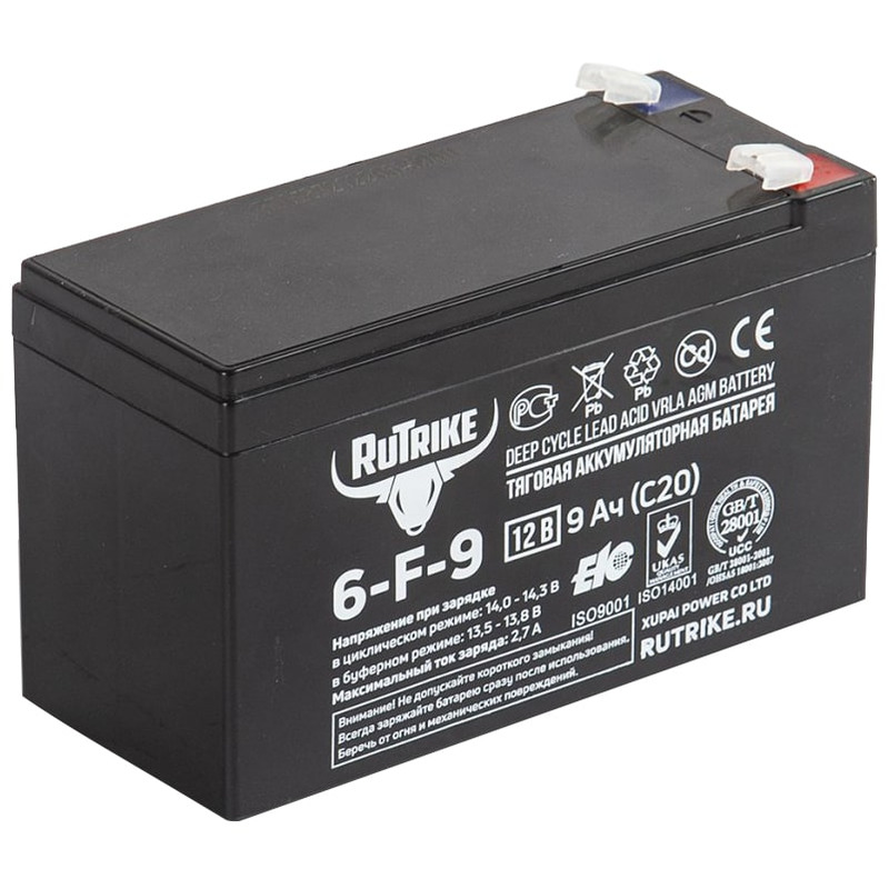 Аккумуляторная батарея Rutrike RuTrike 6-F-9 выполнена по технологии AGM и состоит из утолщённых свинцовых пластин и плотного слоя сепаратора между ними. Батарея не требует обслуживания на протяжении всего цикла эксплуатации. Отлично подходит для работы в системах безопасности и сигнализации, системах бесперебойного питания, системах аварийного освещения, в лёгком и детском электротранспорте и в других схожих сферах применения.