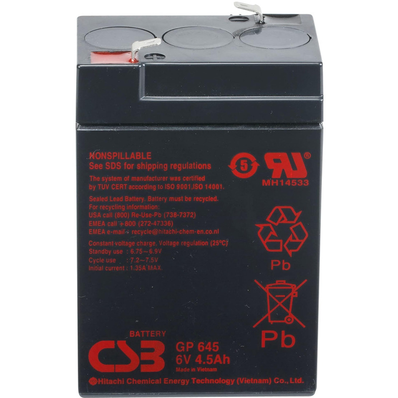 GP 645 - батарея общего применения со сроком службы 5 лет в буферном режиме или более 260 циклов заряда-разряда в циклическом режиме при 100% разряде. Как и все батареи CSB, она перезаряжаемая, высокоэффективная и не требующая обслуживания.