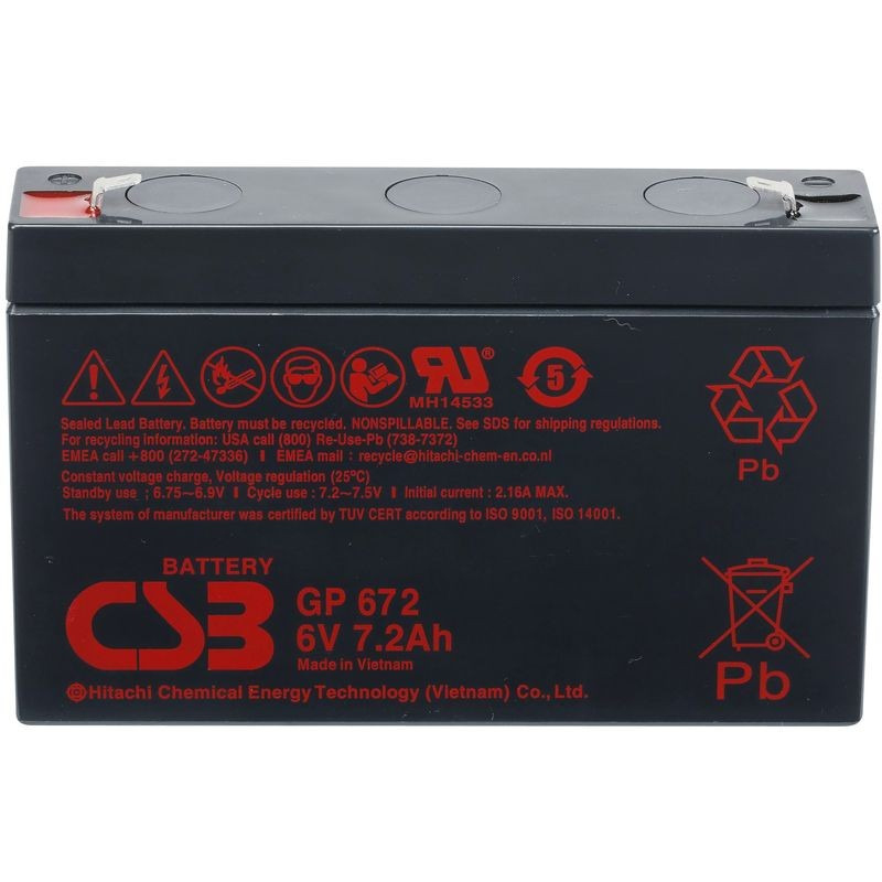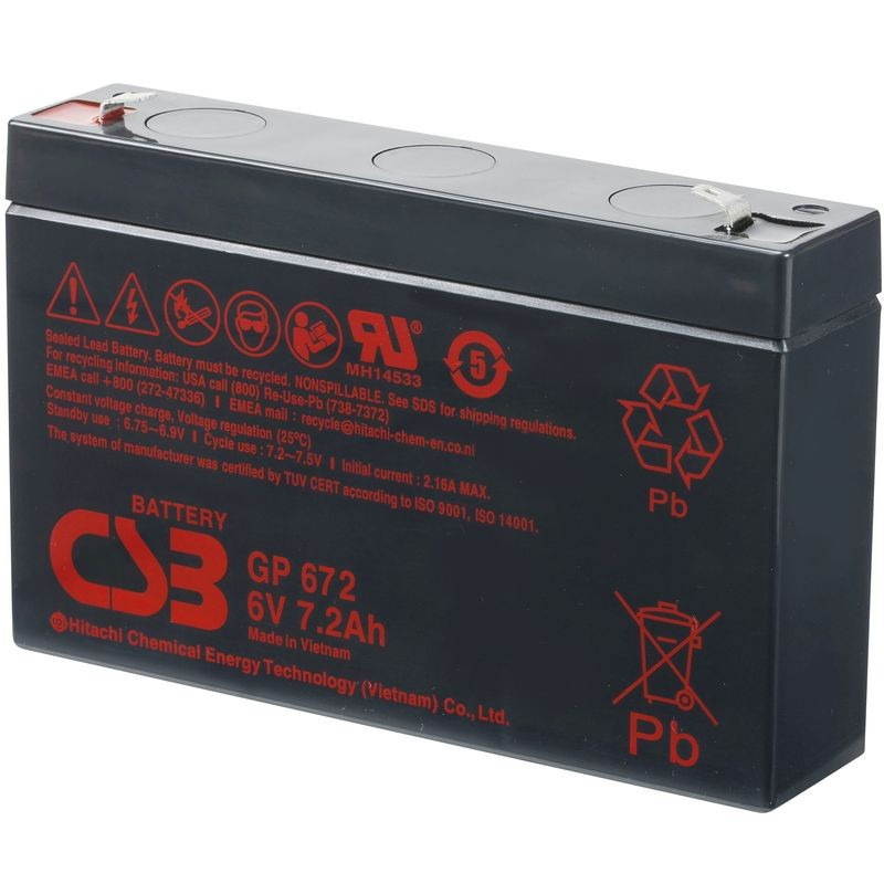 GP 672 - батарея общего применения со сроком службы 5 лет в буферном режиме или более 260 циклов заряда-разряда в циклическом режиме при 100% разряде. Как и все батареи CSB, она перезаряжаемая, высокоэффективная и не требующая обслуживания.