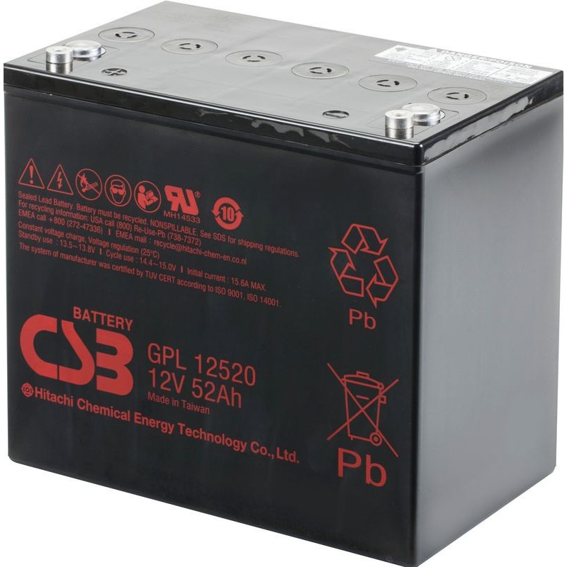 GPL 12520 - батарея общего применения со сроком службы 8 лет в буферном режиме (6-9 лет при 20°С  по классификации Eurobat) или более 260 циклов заряда-разряда в циклическом режиме при 100% разряде. Как и все батареи CSB, она перезаряжаемая, высокоэффективная и не требующая обслуживания.