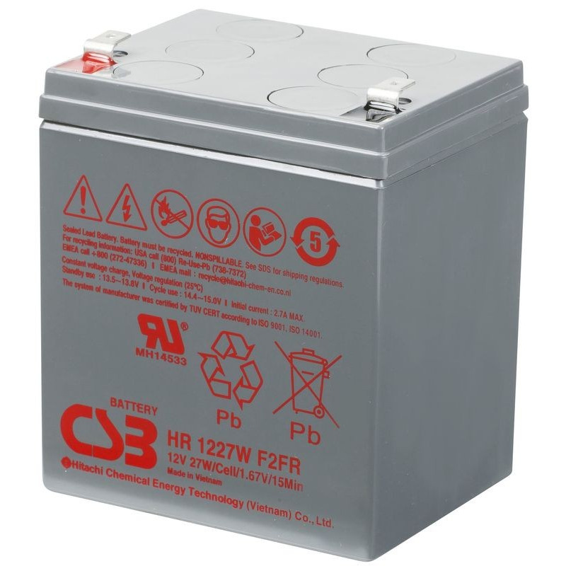 Аккумуляторные батареи CSB серии HR - батареи большой мощности со сроком службы в буферном режиме до 5 лет при температуре 25 °С или до 260 циклов до 100% разряда при работе в циклическом режиме. Их используют в качестве резервного питания промышленного оборудования, источниках бесперебойного питания (UPS), системах охранной и пожарной сигнализации, портативном измерительном оборудовании, электроприборах и другом оборудовании.