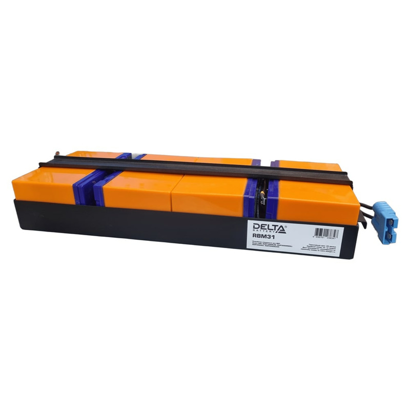 Батарейный модуль RBM31 предназначен для замены вышедшего из строя заводского аккумуляторного блока в ИБП APC от Schneider Electric. Модуль состоит из 4-х свинцово-кислотных аккумуляторных батарей DELTA. Суммарная емкость составляет 9 Ач, напряжение 48 В.