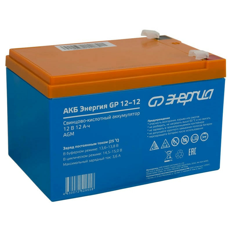 Аккумулятор Энергия АКБ GP 12-12 изготовлен по технологии AGM и предназначен для эксплуатации в буферном режиме в устройствах бесперебойного электропитания, охранной и пожарной сигнализации, информационных и телекоммуникационных системах и других типов оборудования, при работе которых не допускается перерывов в электропитании.