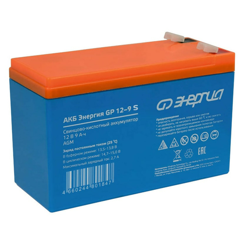Аккумулятор Энергия GP 12-9 S изготовлен по технологии AGM и предназначен для эксплуатации в буферном режиме в устройствах бесперебойного электропитания, охранной и пожарной сигнализации, информационных и телекоммуникационных системах и других типах оборудования, при работе которых не допускается перерывов в электропитании.