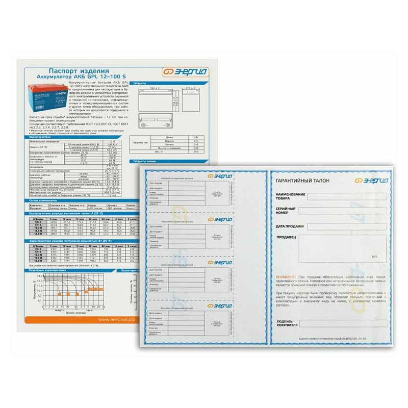 Доставка и оплата Аккумулятор Энергия GPL 12-100 S