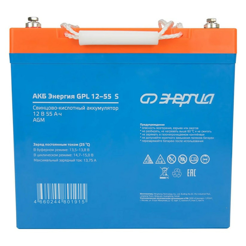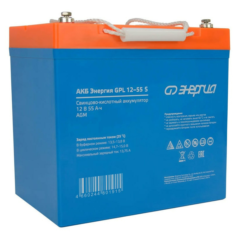 Аккумулятор Энергия GPL 12-55 S изготовлен по технологии AGM и предназначен для эксплуатации в буферном режиме в устройствах бесперебойного электропитания, охранной и пожарной сигнализации, информационных и телекоммуникационных системах и других типах оборудования, при работе которых не допускается перерывов в электропитании.