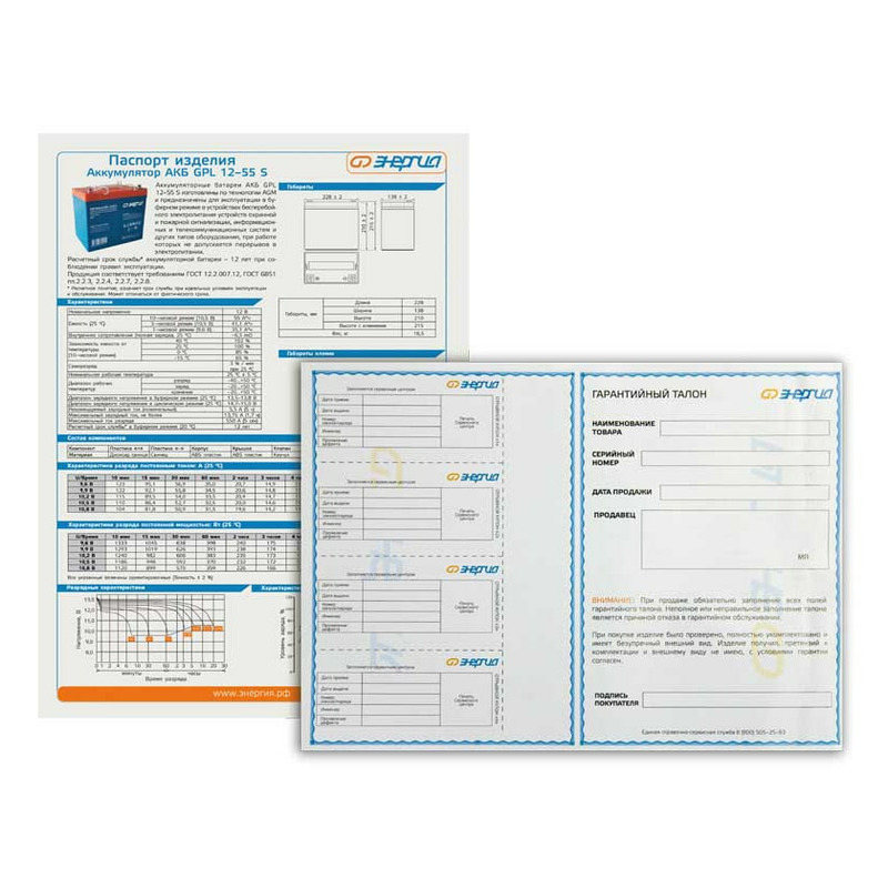 Доставка и оплата Аккумулятор Энергия GPL 12-55 S
