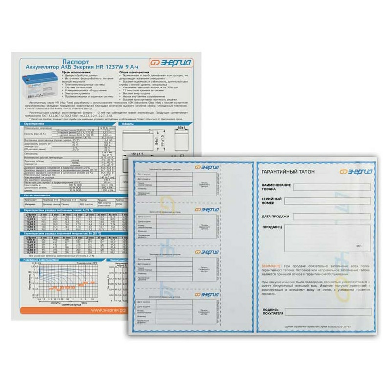 Характеристики Аккумулятор Энергия HR 1237W 9Ач
