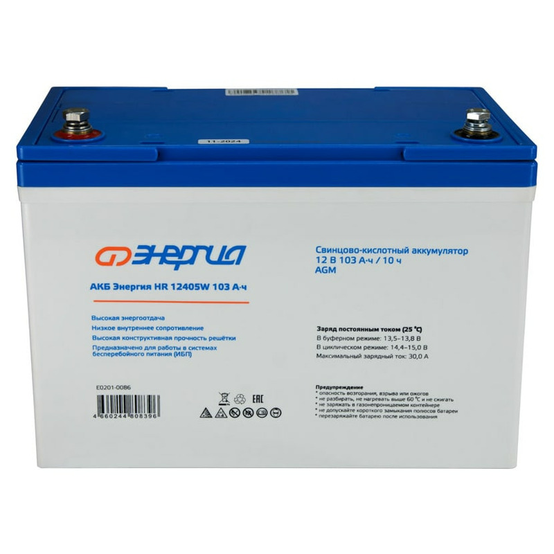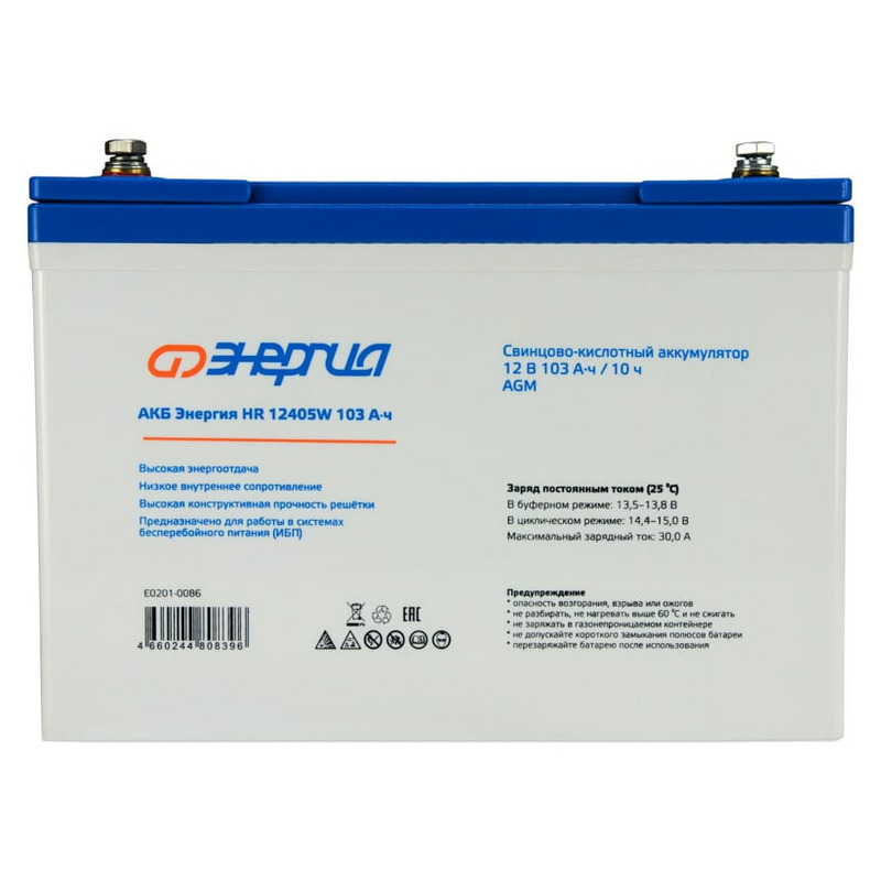 Характеристики Аккумулятор Энергия HR 12405W 103Ач