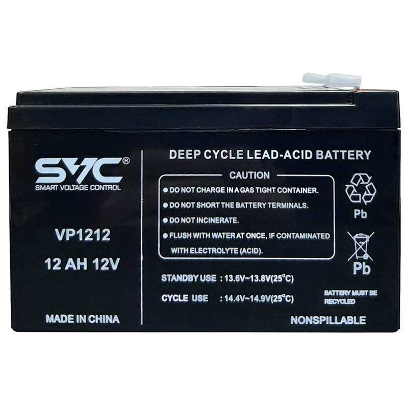 Аккумулятор SVC VP1212 - необслуживаемая батарея, не требует доливки воды, предназначена для работы в циклическом режиме (выдерживает до 1200 циклов). Низкий уровень саморазрядки обеспечивает срок службы от 8 до 10 лет в резервном (буферном) режиме. Герметичная конструкция позволяет использовать батарею в любом положении. Основная сфера применения данной продукции - источники бесперебойного питания (UPS) любой мощности и конфигурации. Также данные батареи широко используются в пожарном, охранном и прочем оборудовании, требующем резервного питания. На сегодняшний день вне конкуренции по соотношению цена/качество.