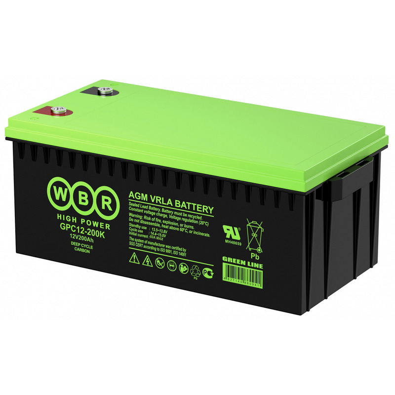 Аккумуляторы WBR серии GPC - герметизированные карбоновые свинцово-кислотные аккумуляторные батареи со сроком службы 15 лет или более 1900 расчетных циклов заряда-разряда в циклическом режиме при 70% разряде. Эти высокоэффективные перезаряжаемые батареи не требуют обслуживания в течение всего срока службы и за счет использования чистого свинца, а также добавки углерода в состав электродов получили улучшенные зарядные и разрядные характеристики.