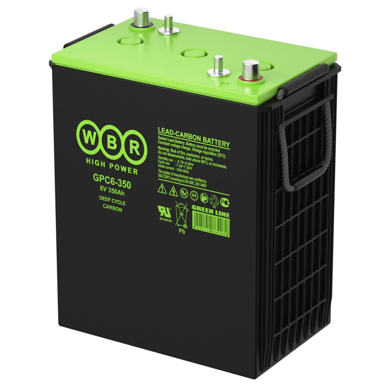 Аккумуляторы WBR серии GPC - герметизированные карбоновые свинцово-кислотные аккумуляторные батареи со сроком службы 15 лет или более 1900 расчетных циклов заряда-разряда в циклическом режиме при 70% разряде. Эти высокоэффективные перезаряжаемые батареи не требуют обслуживания в течение всего срока службы и за счет использования чистого свинца, а также добавки углерода в состав электродов получили улучшенные зарядные и разрядные характеристики.