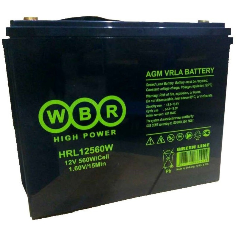 Аккумуляторы WBR серии HRL - батареи с высокой энергоотдачей, необслуживаемые, герметизированные, выполнены по AGM - технологии, способны работать в циклическом режиме, в любом положении, безопасны в эксплуатации, имеют низкий уровень саморазряда, высоконадежны. Срок службы в буферном режиме - до 12 лет.
