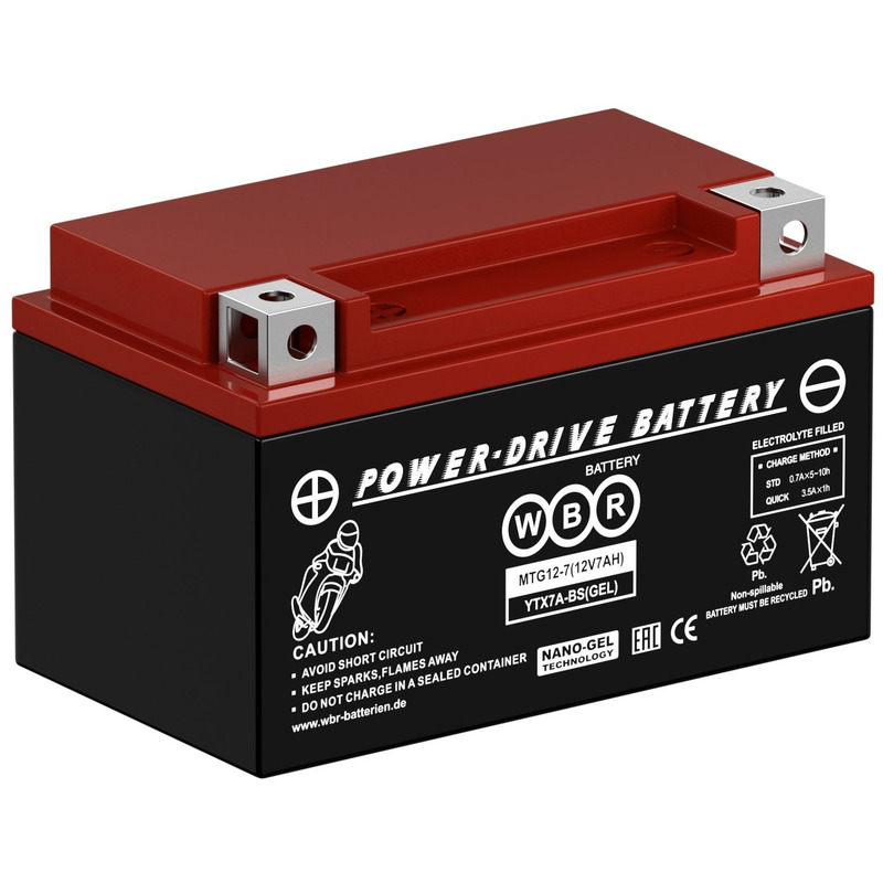 Герметизированные, выполненные по гелевой технологии (GEL), стартерные мотоциклетные свинцово-кислотные аккумуляторы WBR MTG12-7 обладают высоким качеством и надежностью. Эти аккумуляторные батареи успешно выдерживают конкуренцию со стартерными батареями этого класса других производителей, соответствуют техническим характеристикам и являются аналогом мотоциклетных аккумуляторных батарей YUASA серии YB14L-BS. Они предназначены для работы приборов и пусковых механизмов на мотоциклах, скутерах, гидроциклах, квадроциклах, снегоходах и мотовездеходах.