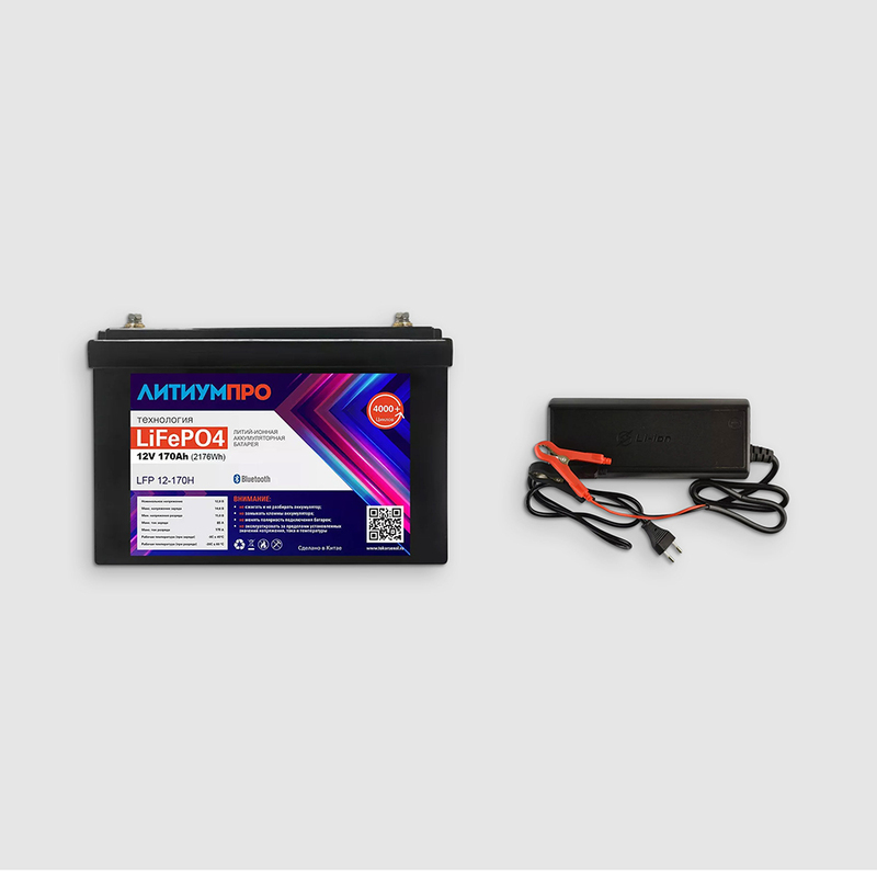 Характеристики Комплект АКБ LFP ЛИТИУМПРО 12В, 170Ач, DALY bluetooth bms, ЗУ 20A