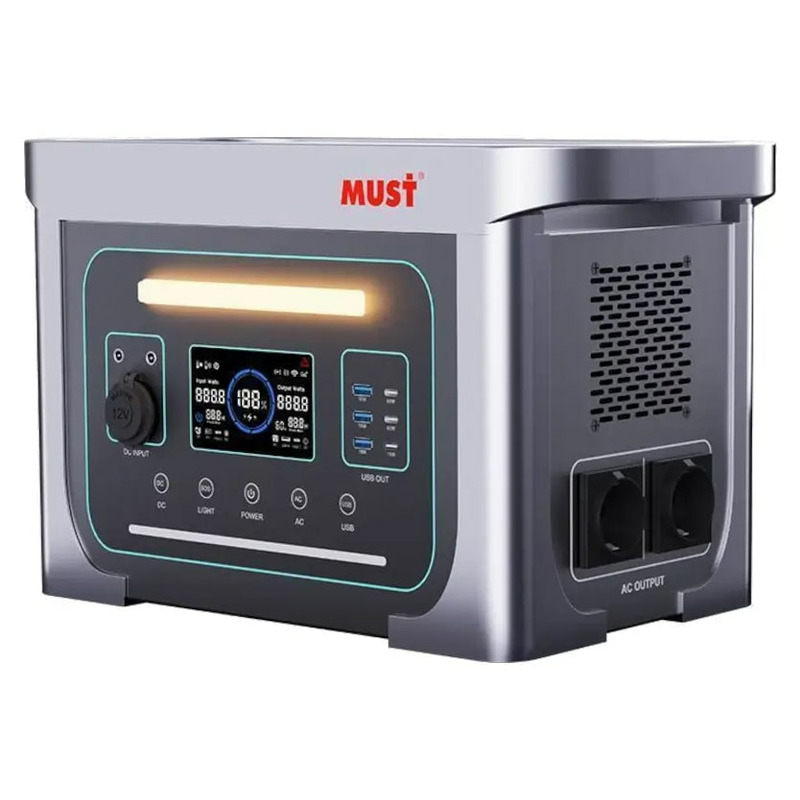 MUST EM1024S — это портативный источник бесперебойного питания, идеально подходящий для хранения энергии для дома и использования в путешествиях. Оснащён литиевым аккумулятором LiFePO4 ёмкостью 1280 Вт/ч.