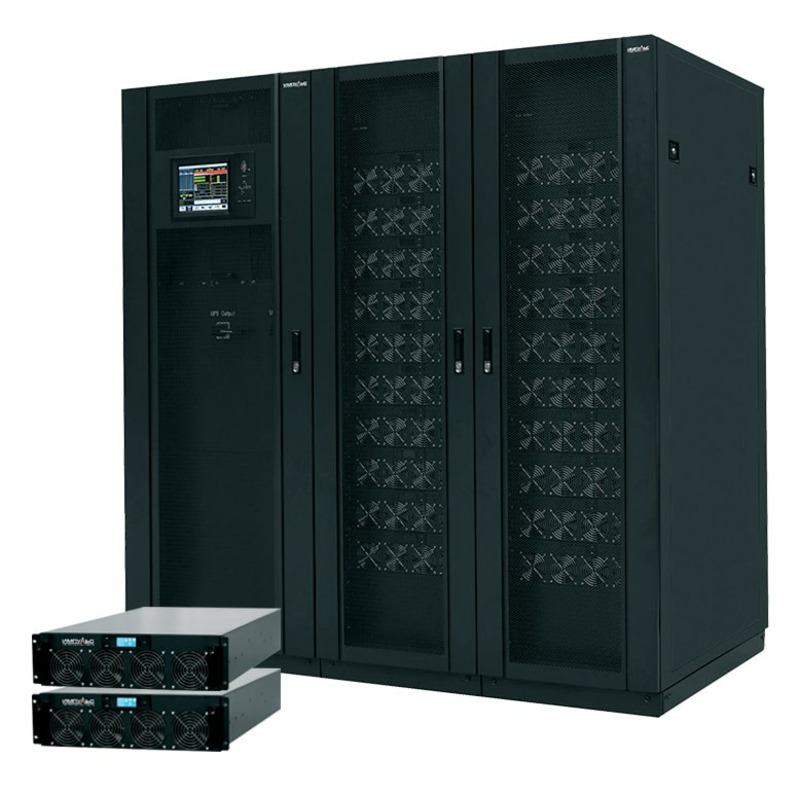 - Независимый ЖК-дисплей для каждого силового модуля: каждый силовой модуль имеет независимый ЖК-дисплей, что дает пользователям возможность обзора статуса внутреннего состояния ИБП и сигналов тревог в режиме реального времени