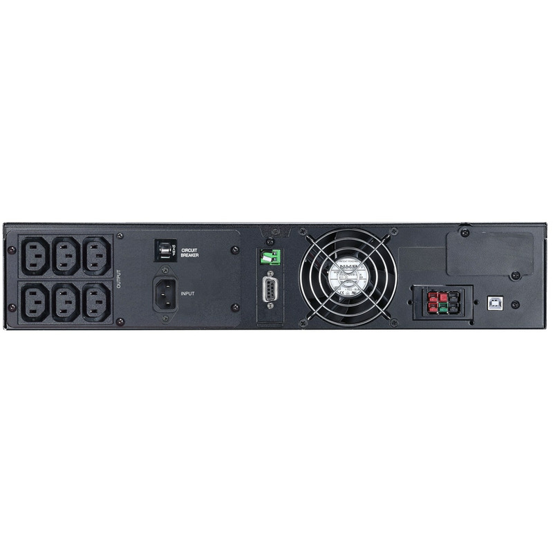 Высокий коэффициент мощности (PF=1) обеспечивает максимальную производительность. Полезными при эксплуатации будут работа в режиме высокой эффективности, горячая замена аккумуляторных батарейных блоков, возможность подключения внешних батарейных блоков для получения необходимого времени автономии.