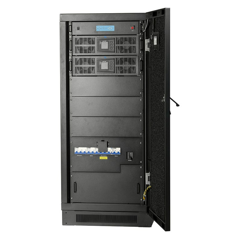 Онлайн ИБП СИП380А30МД14.10-31 двойного преобразования, с трехфазным входом и однофазным выходом, полной мощностью 30 кВА. Предустановлено пять силовых модулей мощностью 6 кВА. Выходной коэффициент мощности до 1,0. Установка до 5 силовых или батарейных модулей высотой 3U. Параллельная работа до четырех ИБП. Совместимость с генераторными установками и высокая перегрузочная способность.
