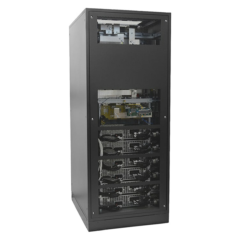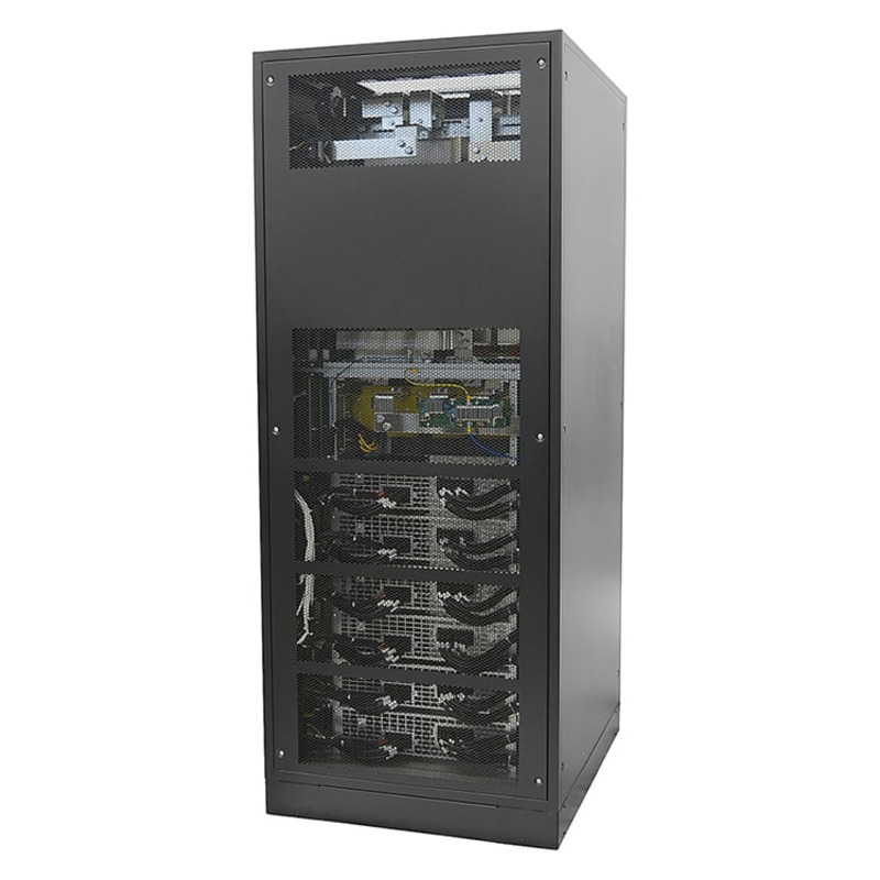 Онлайн ИБП СИП380А400МД20.10-33/100 двойного преобразования, с трехфазным входом и выходом, полной мощностью 400 кВА. Предустановлено четыре силовых модуля мощностью по 100 кВА. Подключение внешних батарейных кабинетов, в том числе LFP.