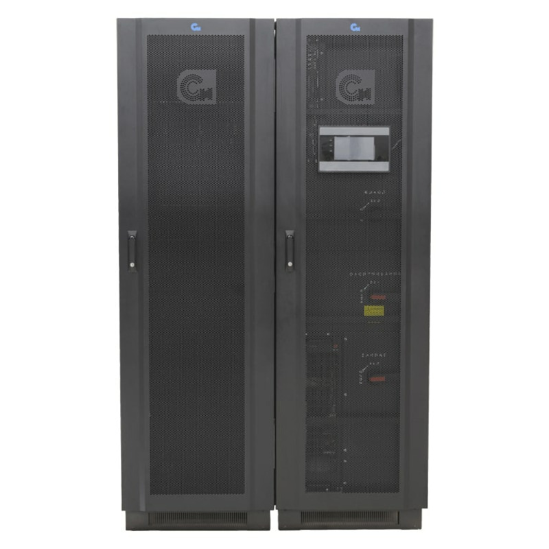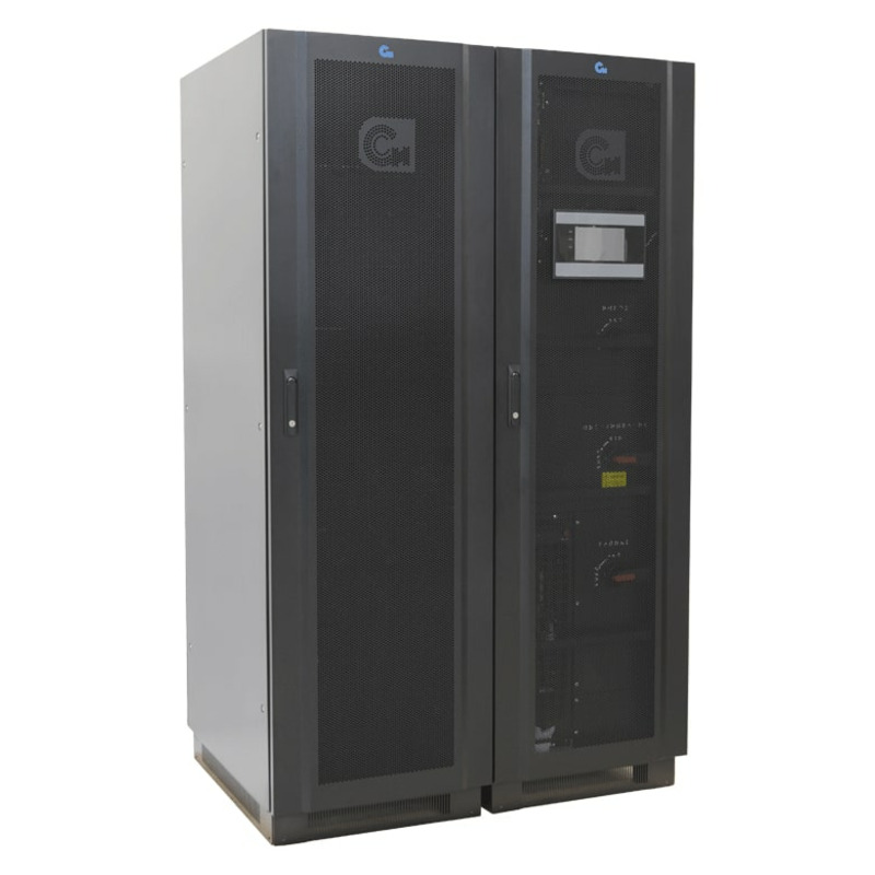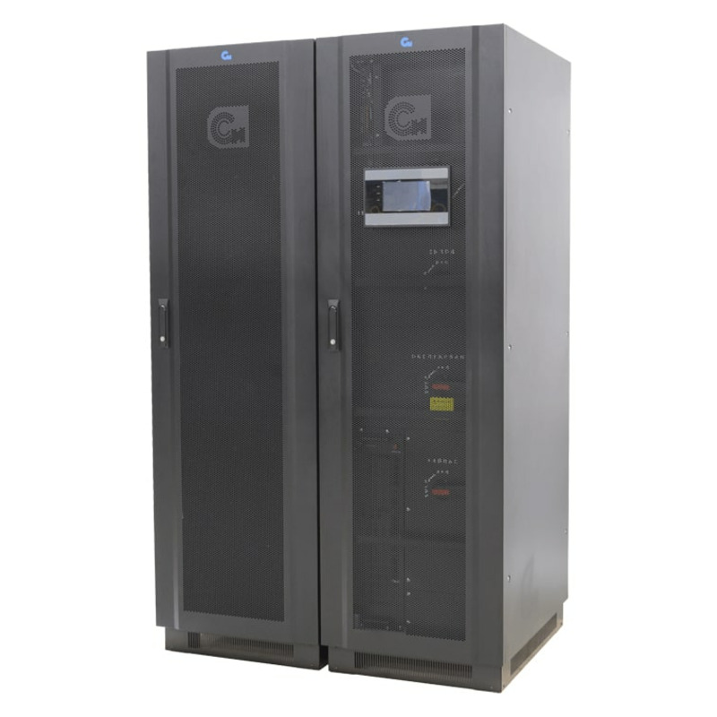 Модульный ИБП СИП380А400МД20.10-33/50 двойного преобразования, с трехфазным входом и выходом, полной мощностью 400 кВт. Предустановлено восемь силовых модулей мощностью по 50 кВт. Подключение внешнего батарейного кабинета. Выходной коэффициент мощности 1,0.