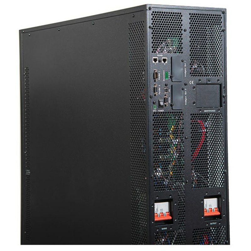Источник рассчитан на круглосуточную эксплуатацию в режиме три фазы на входе / три фазы на выходе и обеспечивает питание нагрузки общей потребляемой мощностью до 20000 ВА переменным током. Напряжение питания 380/400/415 В выбирается пользователем.