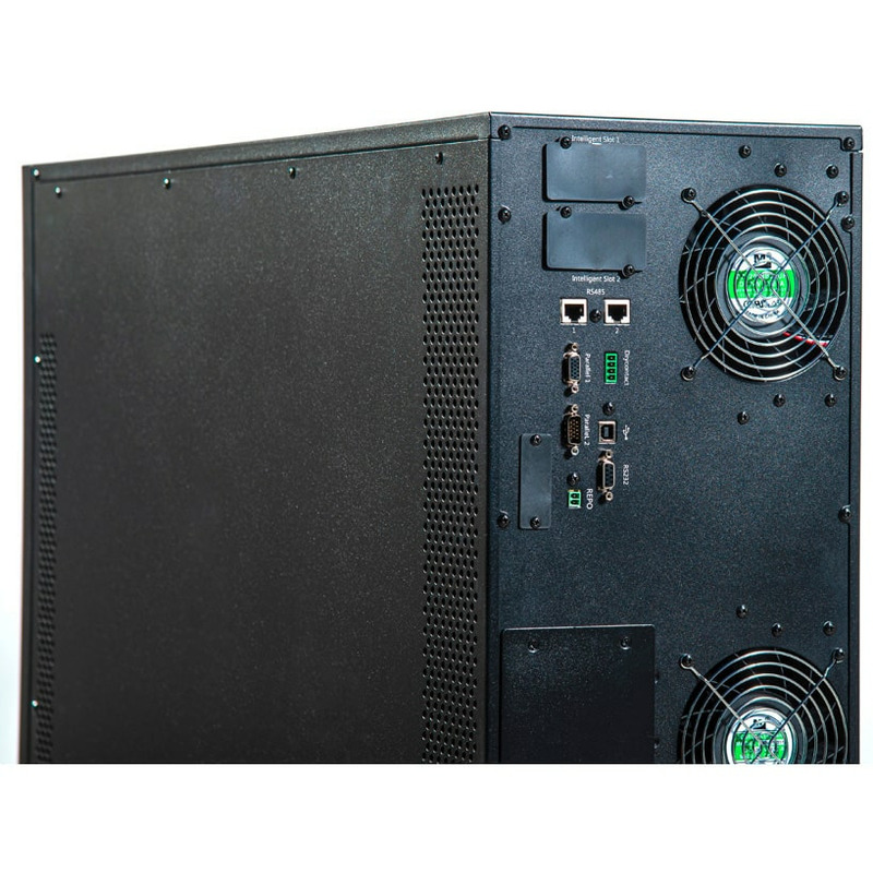 Источник рассчитан на круглосуточную эксплуатацию в режиме три фазы на входе / три фазы на выходе и обеспечивает питание нагрузки общей потребляемой мощностью до 30000 ВА переменным током. Напряжение питания 380/400/415 В выбирается пользователем.
