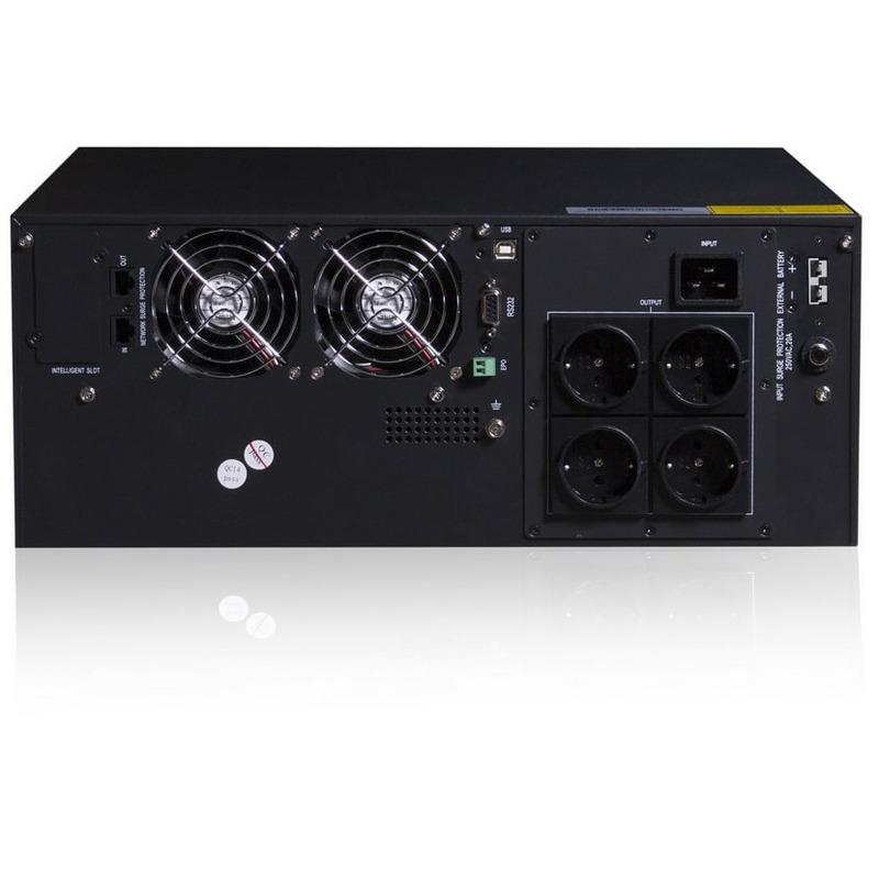 Принцип работы ИБП SVC RT-2KL-LCD/A7 состоит в двойном преобразовании (double conversion) тока. Сначала входное переменное напряжение преобразуется в постоянное, затем обратно в переменное напряжение с помощью обратного преобразователя (инвертора). При потере питания в городской сети время переключения в автономный режим равно нулю.