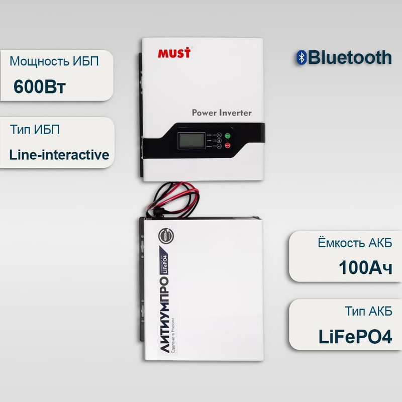 Комплект ИБП Must EP21-0612 PRO + АКБ ЛИТИУМПРО LFP 12-100TW-100