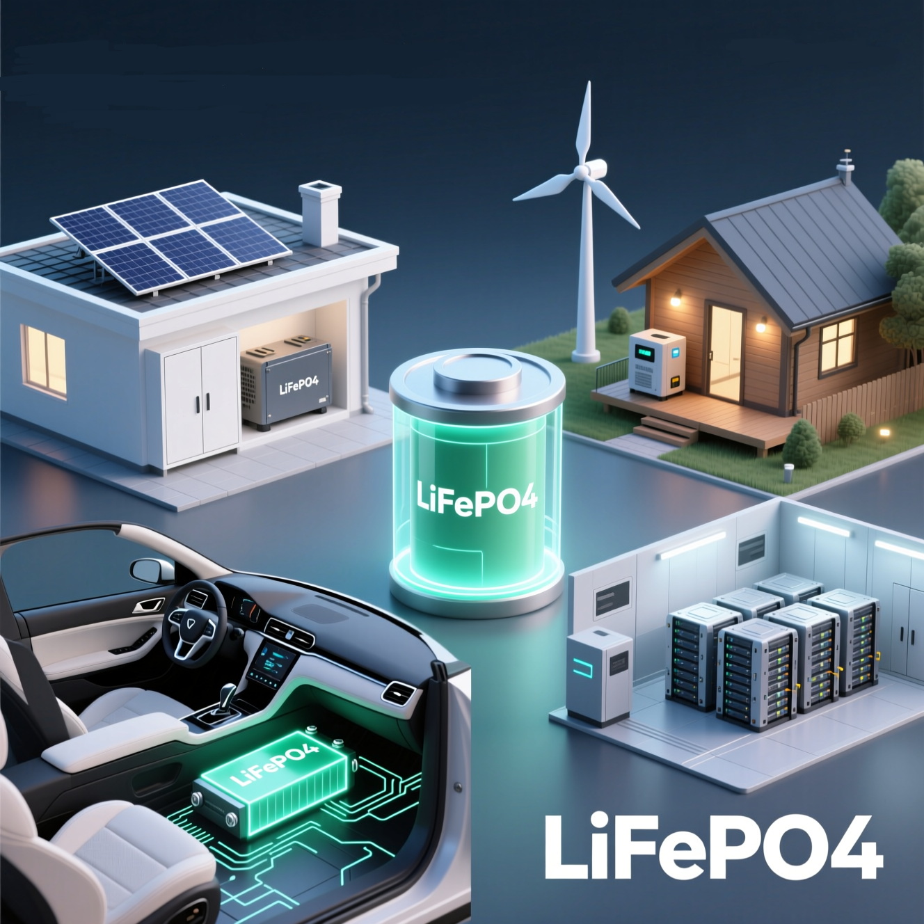 - Одно из главных направлений применения LiFePO₄ — энергетика: