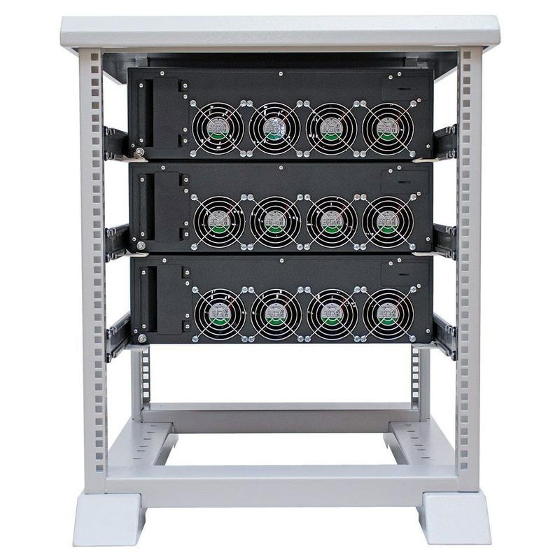 Стабилизаторы IS7000RT установлены в металлической двухрамной стойке высотой 12U, предназначенной для открытого и компактного размещения специализированной техники стандарта 19 дюймов. Также устройства могут устанавливаться вертикально на ровной горизонтальной поверхности с помощью специальных упоров. Все детали для крепления входят в комплект поставки устройства.