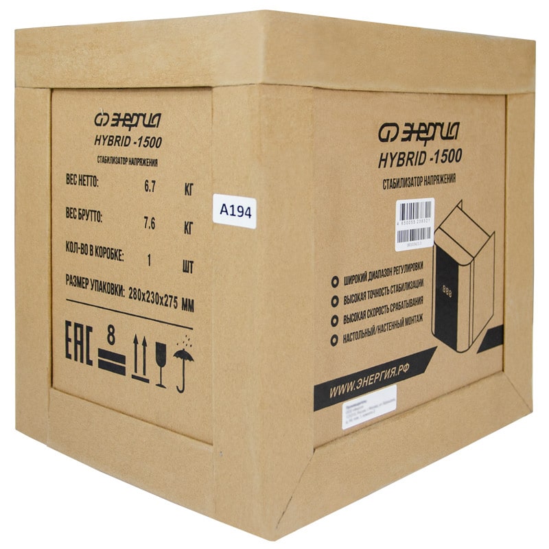 Характеристики Стабилизатор напряжения Энергия Hybrid 1500
