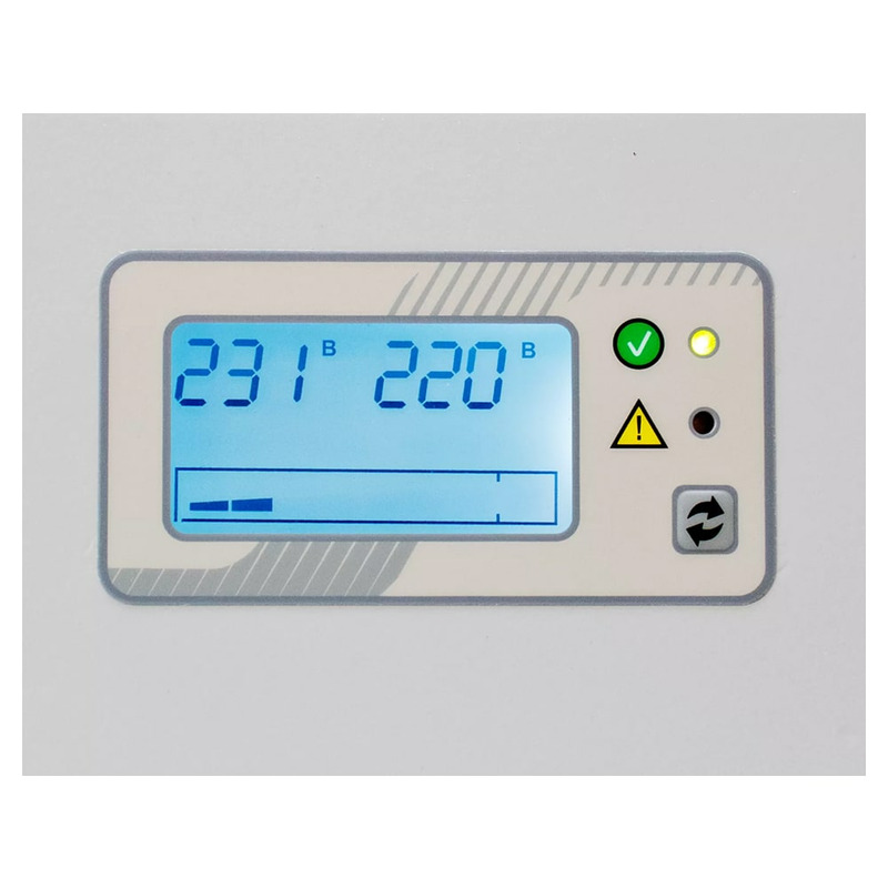 - ЖК-дисплей со светодиодными индикаторами для отображения рабочего состояния, основных входных и выходных параметров и режима работы стабилизатора