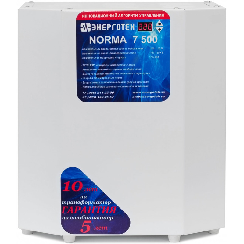 Характеристики Стабилизатор напряжения Энерготех NORMA 7500 HV