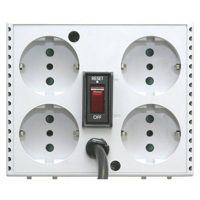 Бытовые стабилизаторы напряжения серии ТСА обеспечивают надежную работу компьютерной и прочей электронной техники при понижении или повышении напряжения электросети там, где не требуется батарейная поддержка. Компактный корпус стабилизатора вмещает 4 выходные евророзетки с заземлением (4 x CEE 7/4) на задней панели с защитой от проникновения посторонних предметов и надежной фиксацией вилок любых типов. Для защиты от перегрузки и короткого замыкания на выходе предусмотрен автоматический выключатель. После устранения причины проблемы выключатель легко возвращается в исходное состояние одним нажатием.