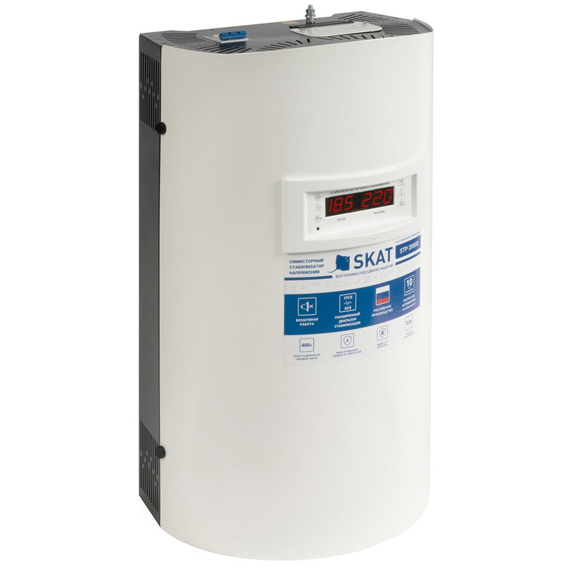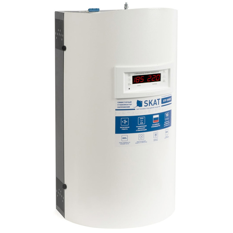 Стабилизатор напряжения SKAT STP-20000 исп. Н предназначен для стабилизации напряжения сети в целях повышения качества энергоснабжения бытовой техники и инженерного оборудования качественным электропитанием. SKAT STP обладает достаточно большой мощностью для питания всего дома целиком, защищает от сетевых неполадок и предотвращает выход из строя бытовой техники и оборудования.