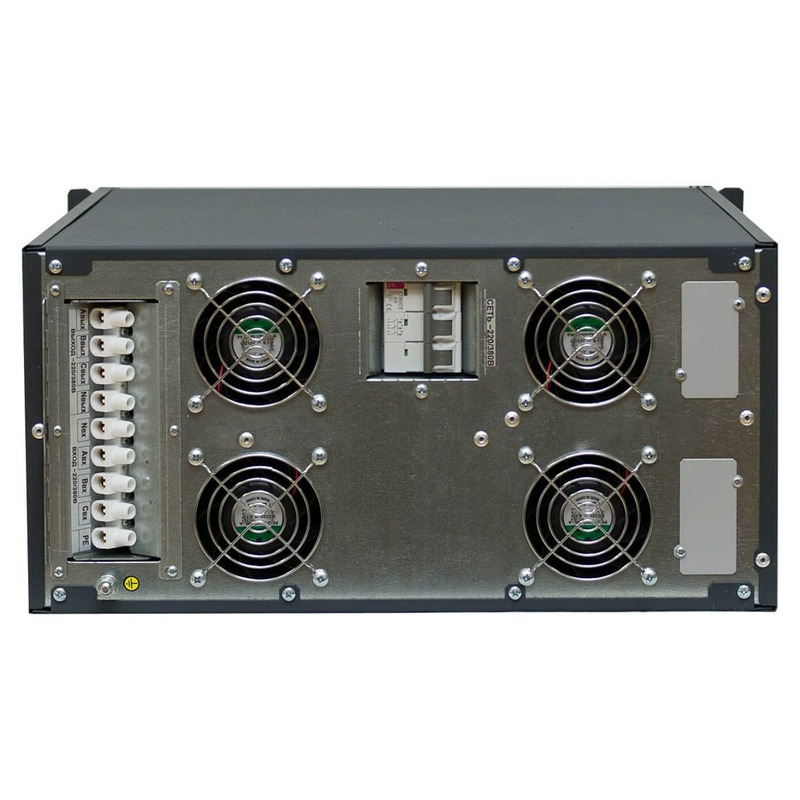 На передней панели устройства расположены четыре светодиодных индикатора («Сеть», «Выход», «Байпас», «Авария») и цифровой ЖК-дисплей для просмотра параметров работы (состояния входной и выходной сети, мощности нагрузки, температуры внутри стабилизатора и др.) и конфигурации, в том числе выбора значения выходного напряжения и режима работы (стандартный, ECO/байпас). Для подключения к сети электропитания и подключения нагрузки используются клеммная колодка и вводной автомат, расположенные на задней панели стабилизатора. Там же находятся два слота для опциональной установки карт мониторинга.